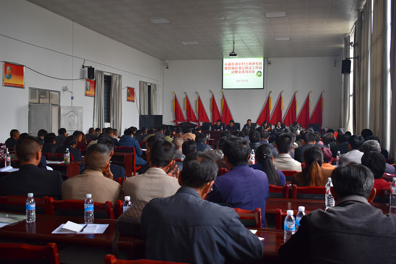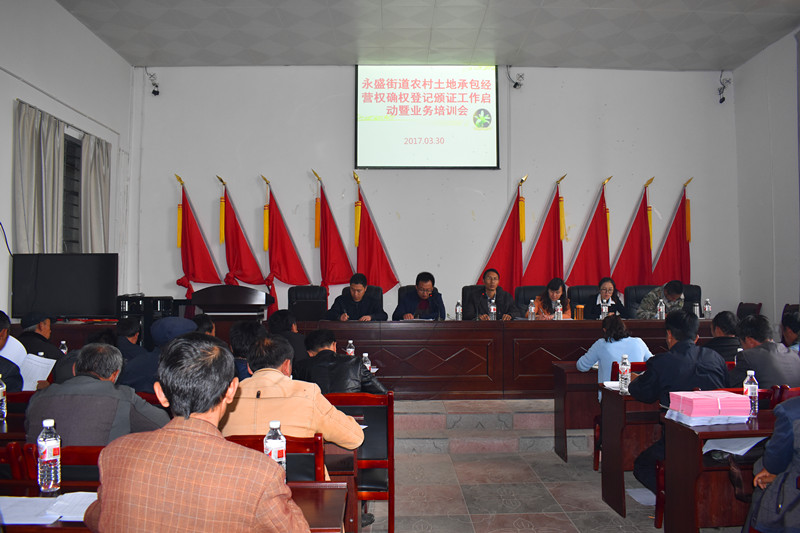 3月30日,永盛街道办事处在大堡子村委会组织召开农村土地承包经营权确权颁证工作启动暨业务培训会议。永盛街道在家的领导成员、四办四中心负责人、12个村(社区)支部书记、主任、分管业务副主任、小组长以及中介公司共计200余人参加了会议。